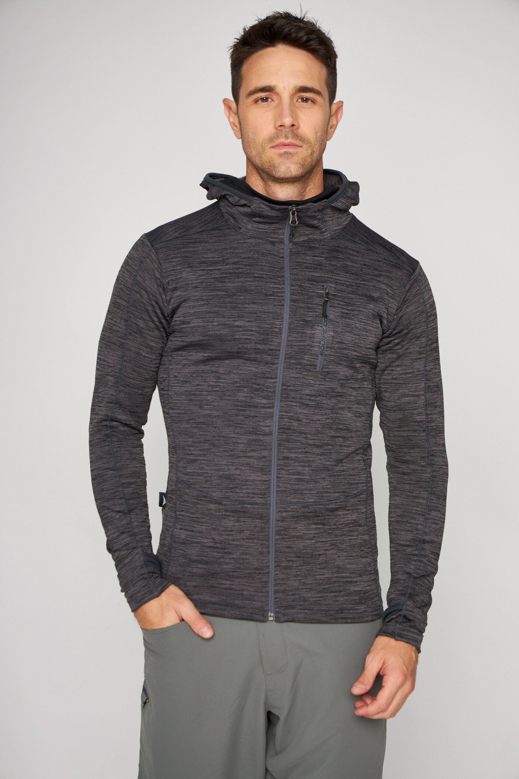 Campera hombre con capucha, bolsillo frontal y manga con